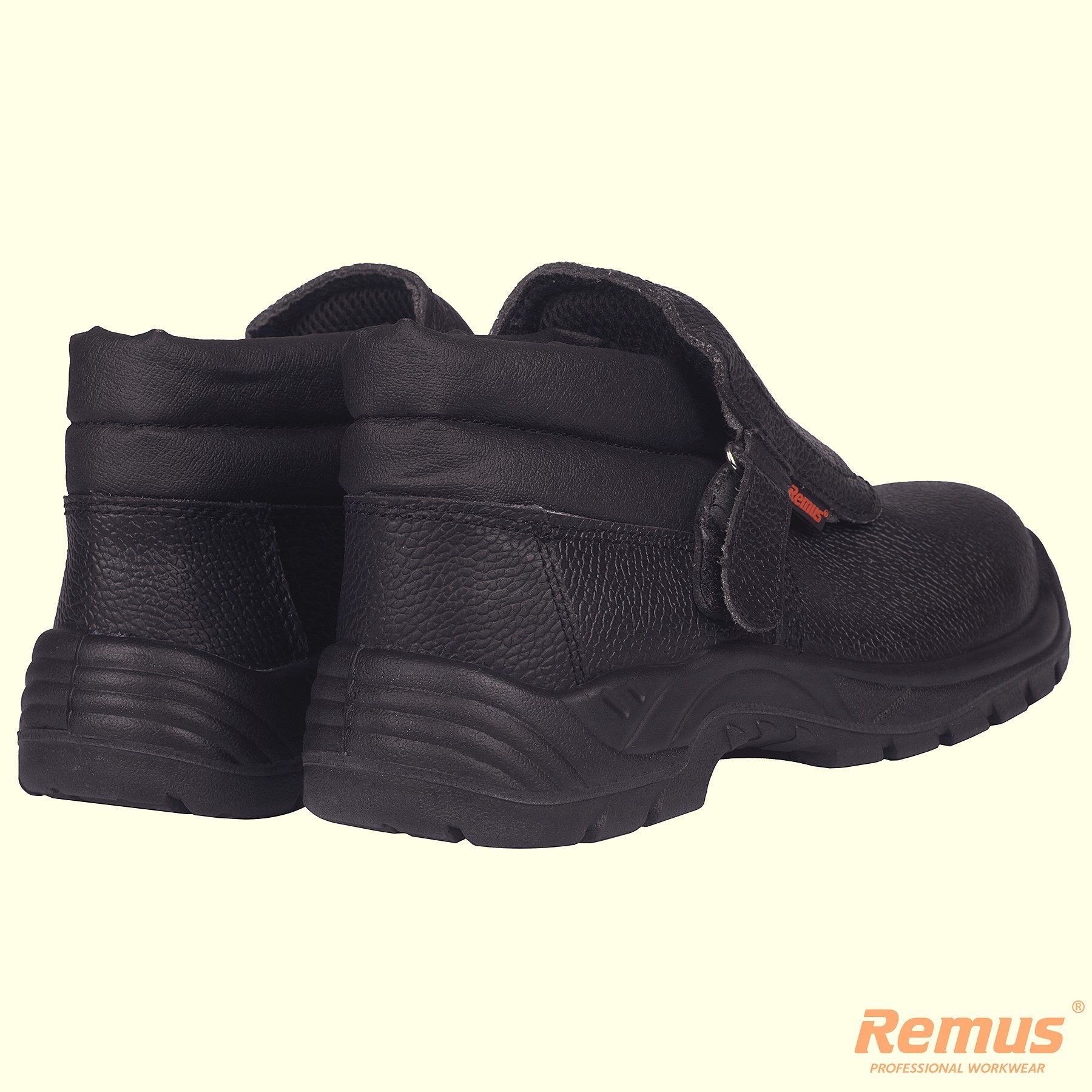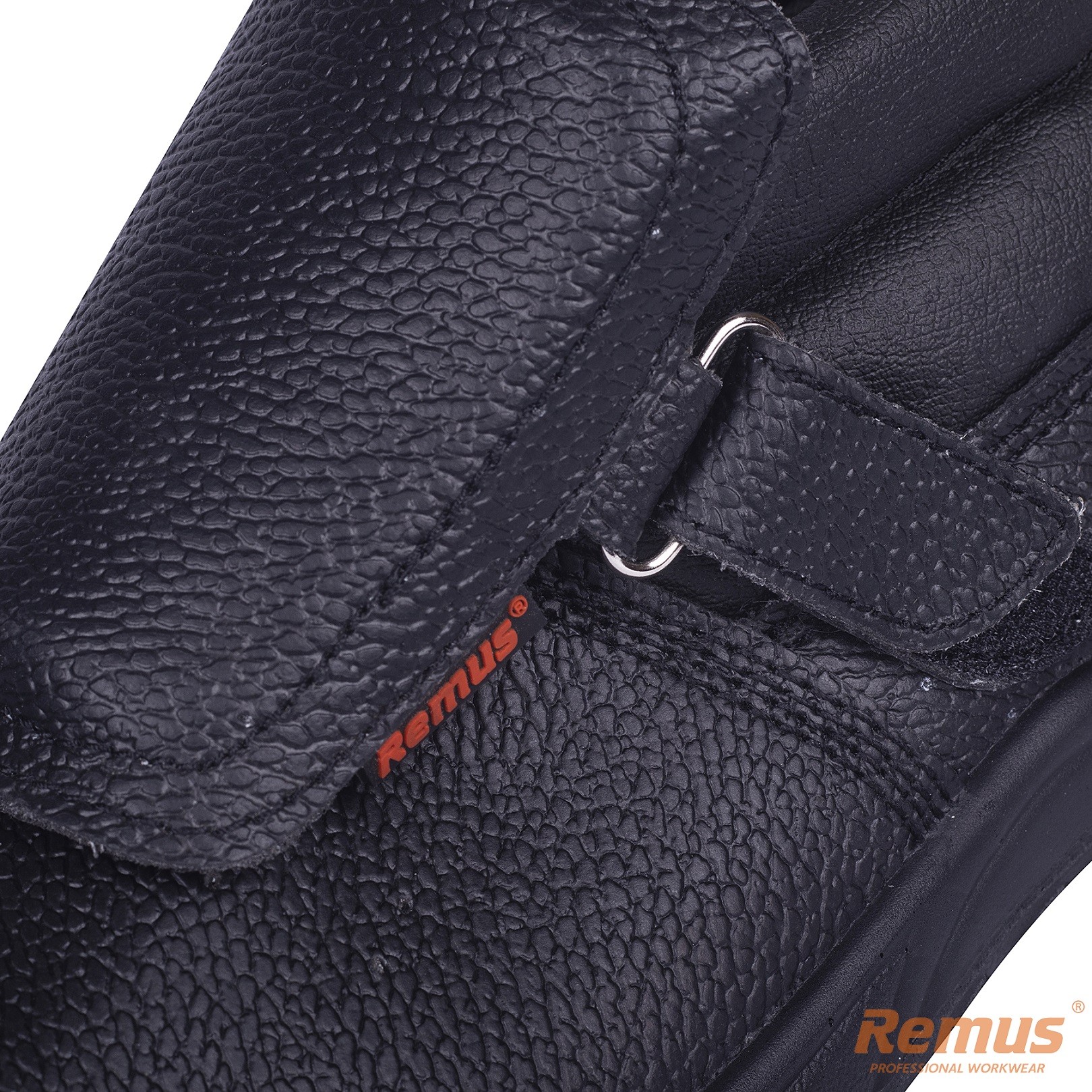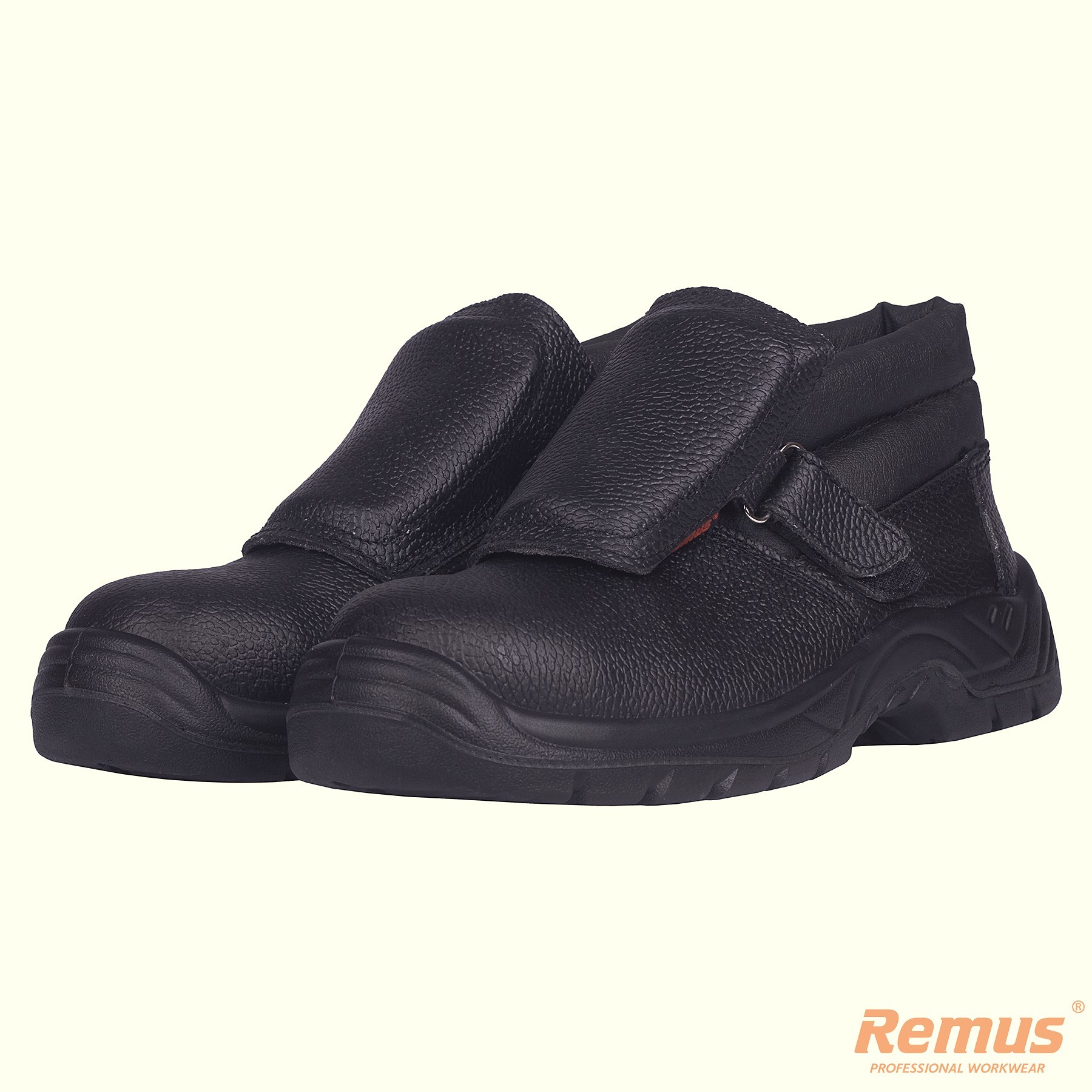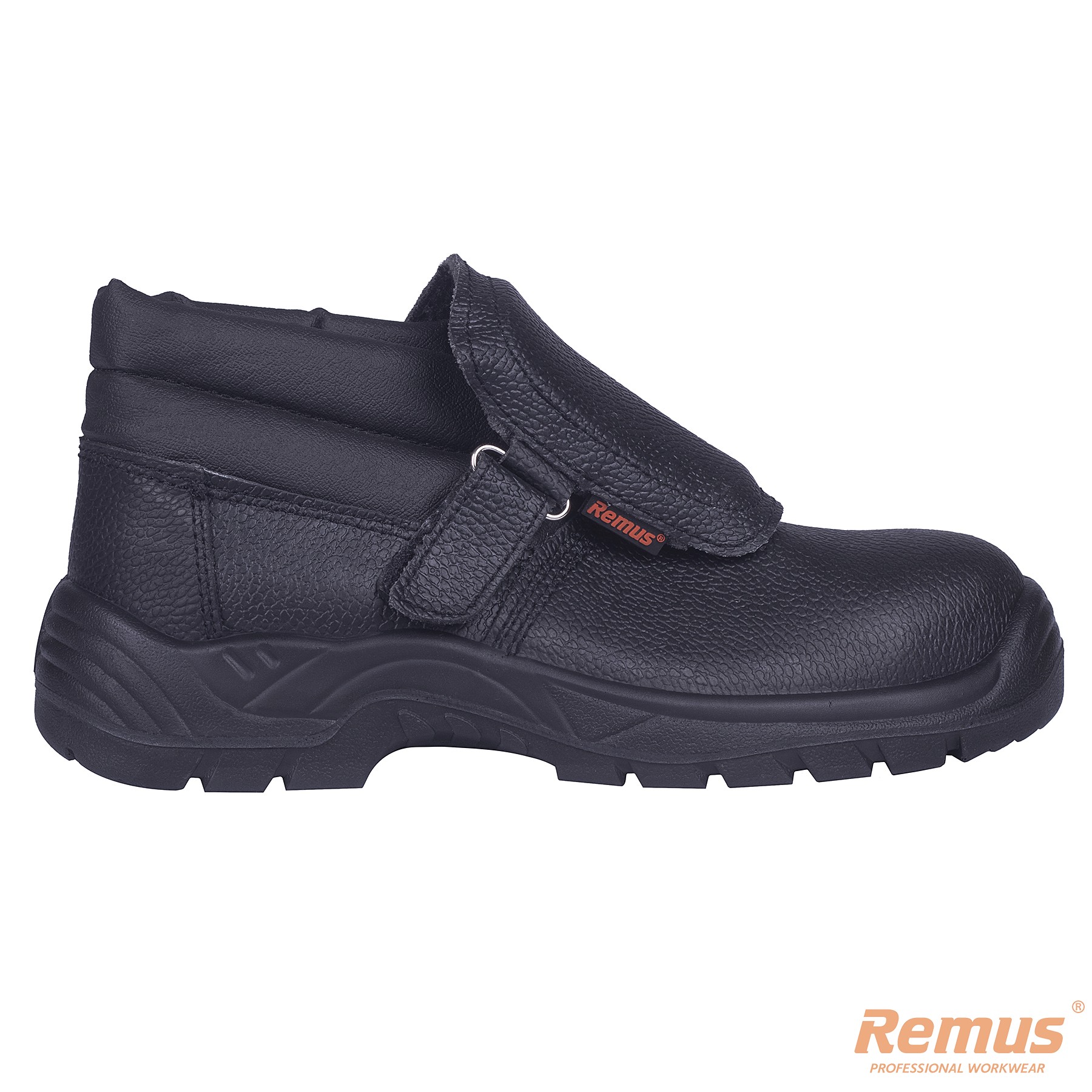 Konstrukcja cholewki wyposażona w zewnętrzny język zabezpieczający przed dostaniem się odprysków do wewnątrz obuwia.